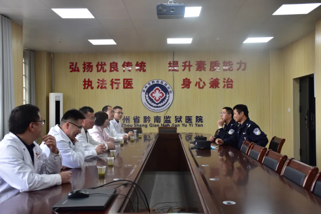 近日,黔南监狱联合贵州医科大学第三附属医院开展专项医疗防控行动,专家团队走进高墙,与监狱医院共同开展座谈交流、健康宣讲及现场诊疗等一系列活动,强化监狱疾病防控能力,深化监地医疗协作,构建监地医疗立体化防控体系。