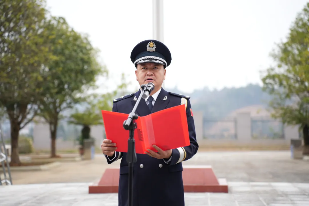 黔南监狱党委书记、监狱长任国强带领全体民警重温入警誓词,铮铮誓言回荡广场,既是对初心的回望,更是对使命的承诺。随后,任国强发表节日致辞,回顾过往成绩、展望发展蓝图,勉励全体民警勇毅前行,以饱满热情投身监狱事业。