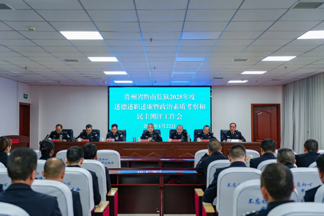 1月22日,黔南监狱召开2025年度述德述职述廉暨政治素质考察和民主测评工作会。监狱党委书记、监狱长任国强出席会议并作讲话。党委副书记、政委彭学军主持会议。党委班子成员、全监科级领导干部及民警代表参加会议。