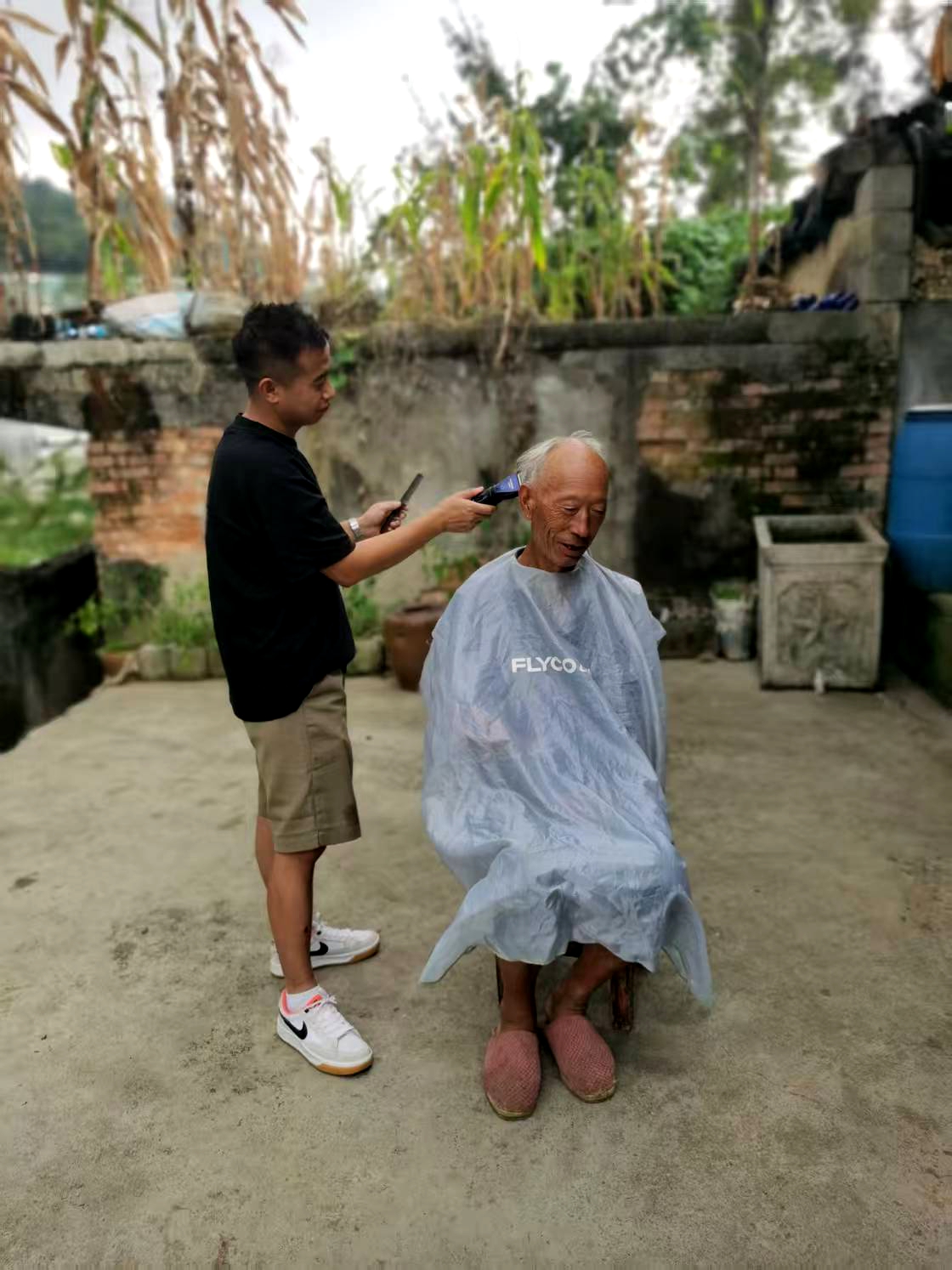 纳雍县寨乐镇英底村,总能看到一个忙碌的身影——贵州省清镇监狱派驻这里的驻村工作队员杨磊。几把椅子,一面镜子,村头树下,他和同事们张罗起的临时“理发店”又开张了。梳子轻轻理顺老人花白的鬓发,剪刀嚓嚓作响,碎发落下,映着老人脸上舒展的笑纹。“腿脚不利索,去镇上理发是个大难题,没想到杨磊他们能把‘理发店’搬来了这里!”老荀摸着清爽的头发,眼里满是笑意。半年来,这把流动的剪刀,已在杨磊和队友们的带动下,为百余名老人、孩子和行动不便的村民理去了“烦恼丝”。剪短的是头发,连起的却是干部与群众的心。