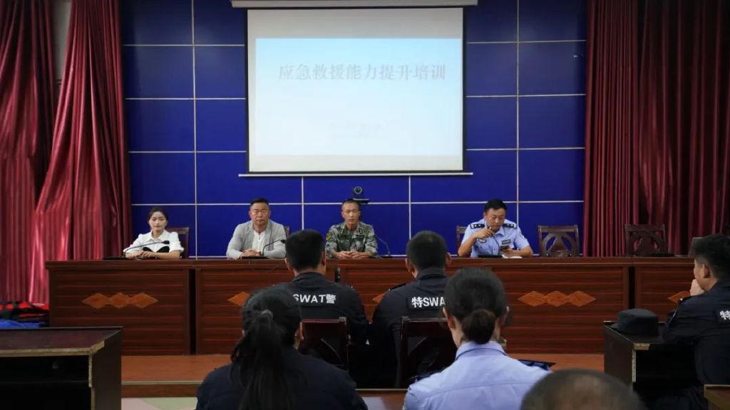 会议过程中,安全监督管理科科长王杰向民警们介绍了本次培训的目的和意义,并对培训的各位老师进行了介绍。培训老师紧密结合应急管理、应急救护定义、应急救护施救等内容向参会民警职工进行详细讲解。