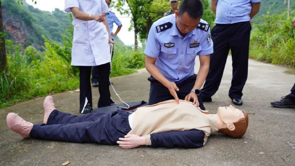 在实践操作课上,老师们带领参训民警练习心肺复苏操作技术,仔细讲解动作要领,认真纠正参训民警的不规范动作。
