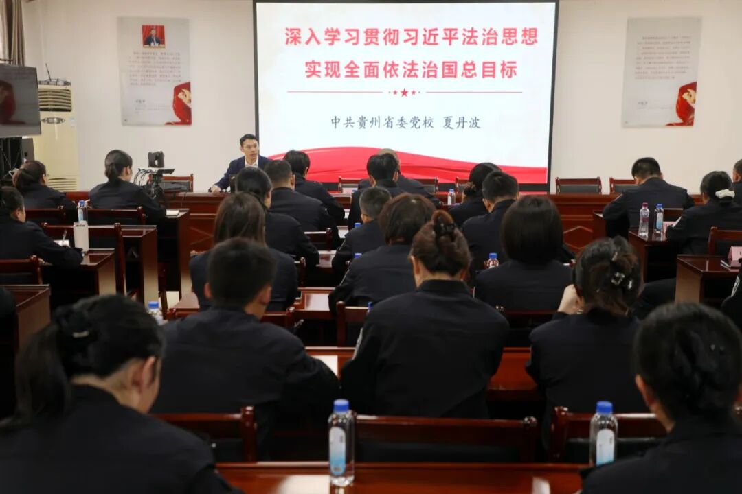 此期培训,中共贵州省委党校法学教研部副主任、教授夏丹波受邀以“深入学习贯彻习近平法治思想,实现全面依法治国总目标”为题,围绕“习近平法治思想的确立过程和重大意义、主要内容与核心要义、学习领会与贯彻落实”三个方面,结合典型案例对习近平法治思想的丰富内涵作了全面讲解和深入阐述。培训内容主题鲜明、理论深厚、重点突出,为参训民警深刻理解、准确把握和更好践行习近平法治思想提供了有力指导。