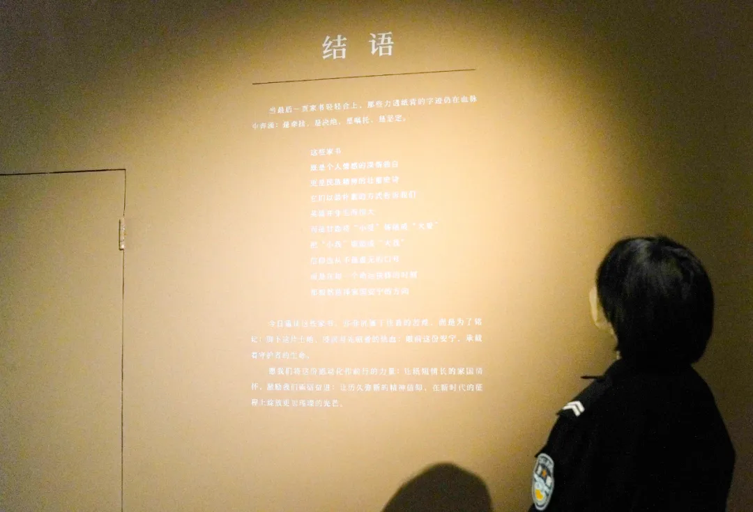 在展览尾声,设置了“人生有信·自有回音——你们的家书”和“我把日子寄给你---我们的家书”两个板块,进一步引导民警从历史中汲取力量,将优秀的传统价值观融入到血脉之中。