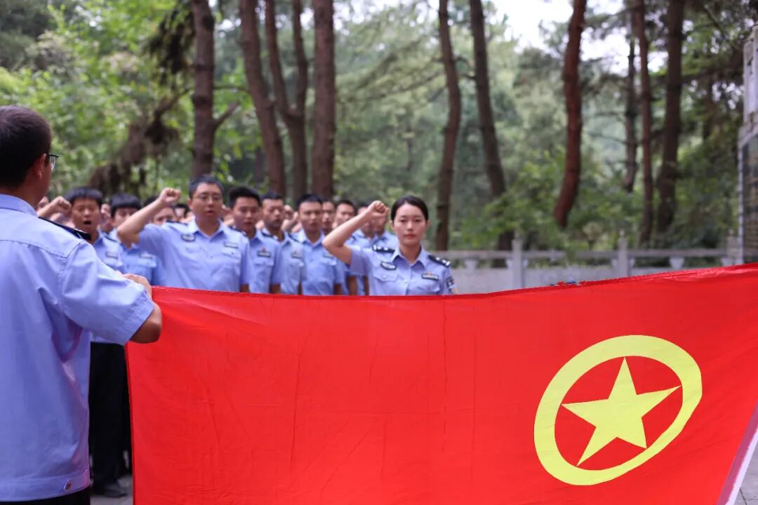 全体青年民警举起右拳,对着鲜红的警旗,重温入团誓词,坚定初心使命,把对革命英烈的缅怀和追思之情化作推动新时代监狱事业高质量发展的动力。