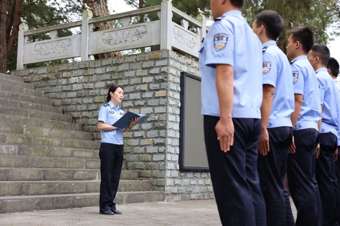 纪念碑前,团青民警开展了一堂主题为《英雄不朽,精神永续》的团课。今年是我国第11个烈士纪念日,丰碑常在,英雄常驻,青年干警们要从烈士英勇事迹中汲取“天地英雄气、千秋尚凛然”的奋进力量,以实际行动践行“对党忠诚、服务人民、执法公正、纪律严明,为捍卫政治安全、维护社会安定、保障人民安宁而英勇奋斗!”的永恒誓言。