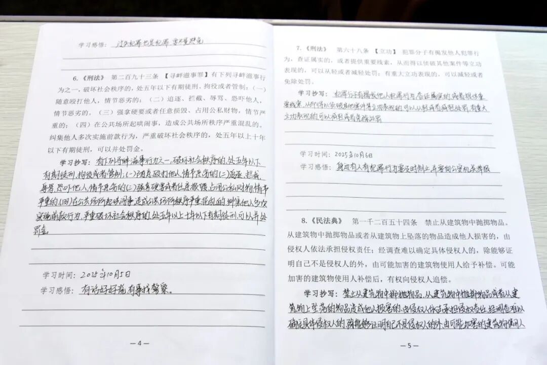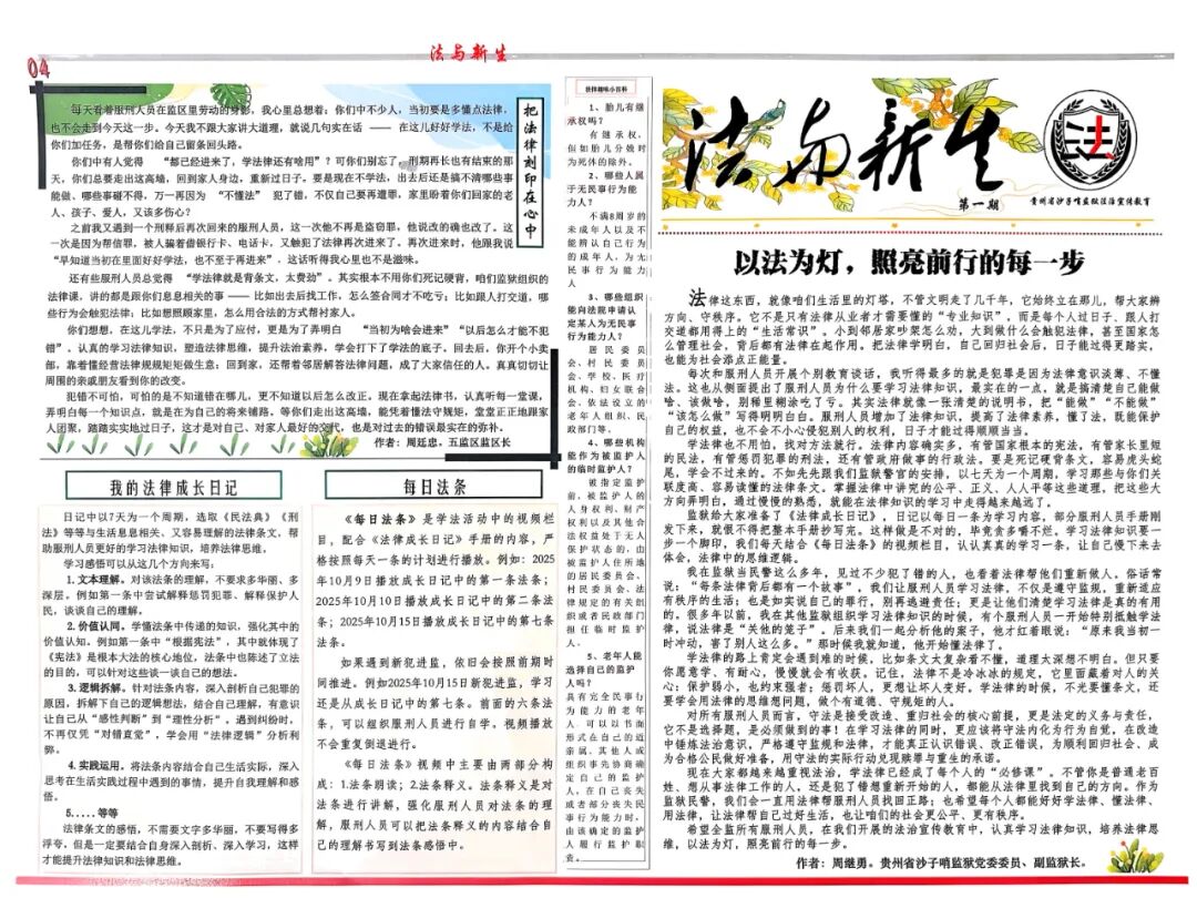 为推动法律边界内化于心、规则意识外化于行,监狱构建多维度、常态化普法格局。组建由民警、律师、人民调解员组成的专业法治宣讲团,通过“定期讲、专题讲、个案讲”三维模式,深入剖析违法犯罪危害与法律后果;推出“每日法条”普法栏目,精选与重新犯罪关联度高的法律条文制作可视化视频,利用新闻联播前10分钟“集中学”、晚间8点“插播学”强化记忆,同步督促罪犯撰写“法律成长日记”记录感悟;创办《法与新生》半月刊,整合法律咨询、专家普法、学法心得等优质内容,以“微规模、高频次、情景化”模式线上线下联动普法。