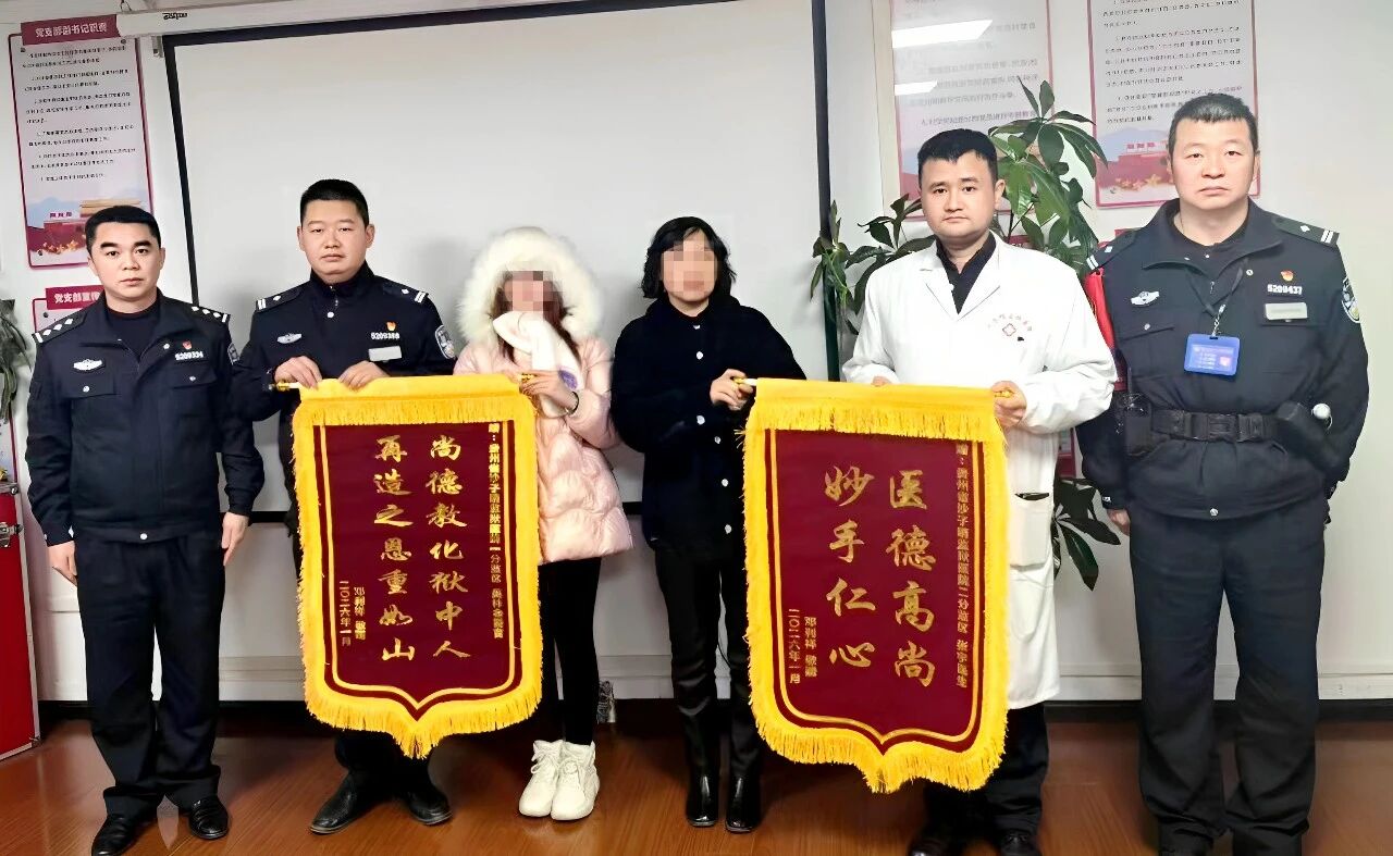 近日,在贵州省沙子哨监狱医院,一场特殊的锦旗交付悄然进行。罪犯邓某的妻子与女儿将两面锦旗分别送到监狱民警与医生手中——一面绣着“尚德教化狱中人,再造之恩重如山”,另一面则写着“医德高尚,妙手仁心”。锦旗上的字句,承载着家属对监狱教育改造与医疗工作最诚挚的认可。