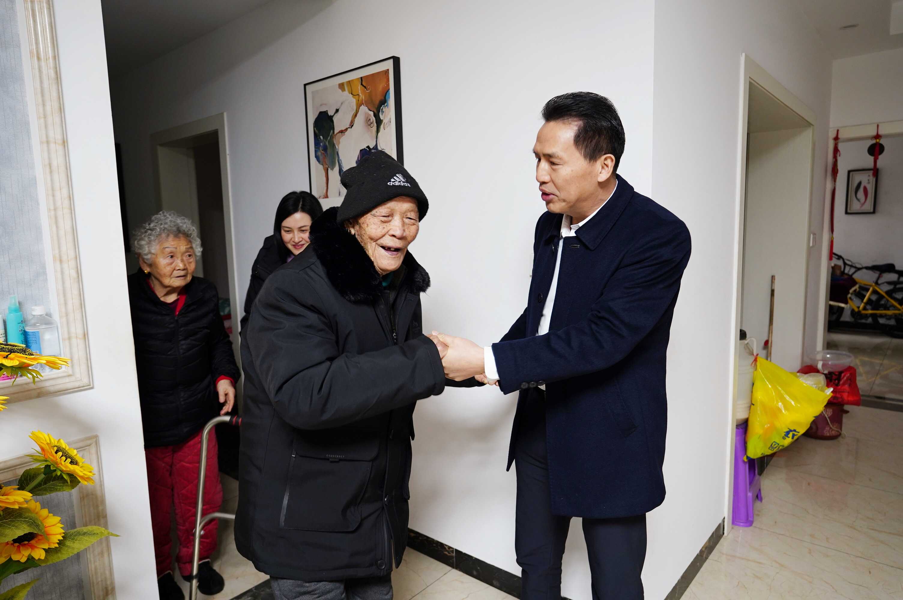 在离休老干刘怀义家中,党委书记、监狱长潘盛华紧握老同志双手,亲切询问老同志身体健康情况和生活起居情况,叮嘱老同志保重好身体。潘盛华表示,老同志身上有着老一辈革命家不畏牺牲、艰苦奋斗、一心为公的精神,是我们的宝贵财富和学习的榜样,家属和离退休部门要做好照料帮扶工作,时刻把老同志的生活冷暖放在心上,多倾听老人心声,多解决实际困难,全力做好老同志的服务保障工作,真正让老同志共享时代发展成果、安享幸福晚年。