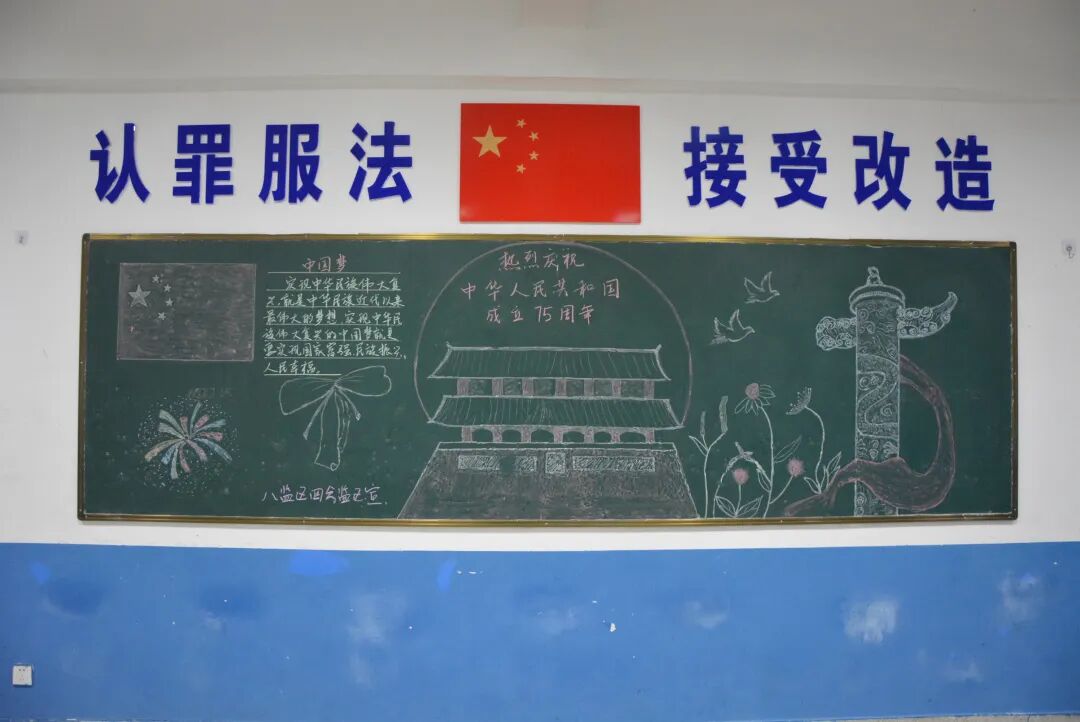监狱充分利用现有资源,将黑板报、宣传栏等媒介打造成传播爱国之声的阵地。板报上一幅幅生动形象的绘画、一篇篇激情洋溢的文章,记录了新中国75年来的辉煌成就,也如同一面面镜子,映照出罪犯心灵的蜕变与成长。