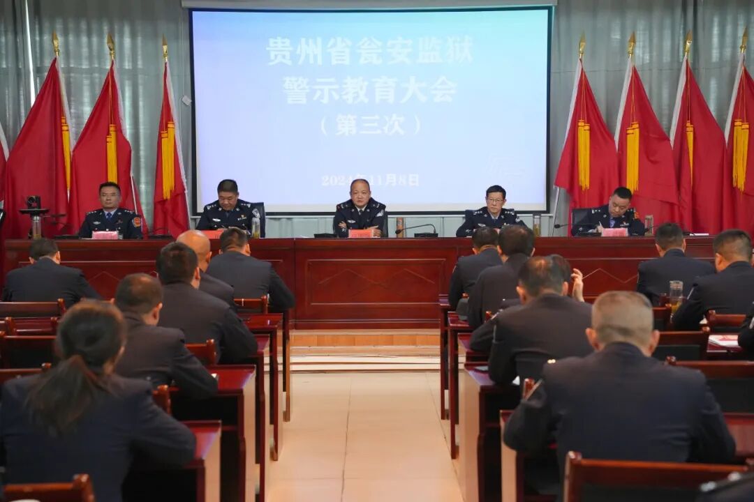 11月8日,瓮安监狱召开2024年度第三次警示教育大会。党委副书记、政委任国强出席并讲话,党委委员、纪委书记安俊平作警示教育讲话,党委班子成员、除值班执勤外全体民警参加会议。