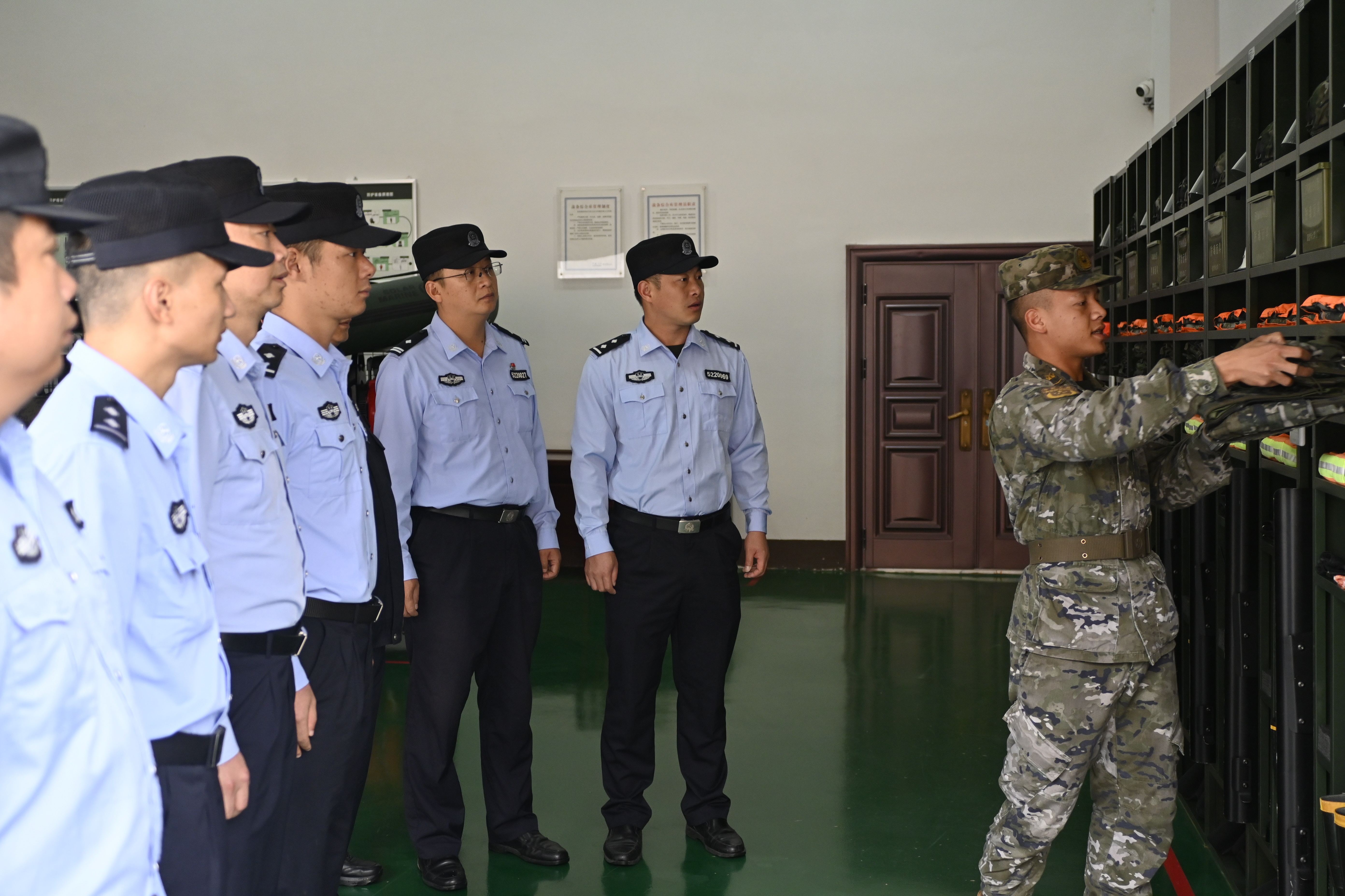 踏入整洁庄严的武警营区,浓厚的规范化氛围便扑面而来。在部队引导员的带领下,管区民警首先参观了装备器材库。库内各类装备器材定置管理、分类有序、标识清晰,摆放横竖一线、整洁如新,维护保养记录详实完备。官兵对装备性能、操作规程、管理规定对答如流,展现了极高的专业素养和日常养成的严谨作风。这种“物有定位、物归其位、责任到人”的精细化管理模式,让参观民警深刻感受到了规范化管理在提升战备效能方面的基础性作用。