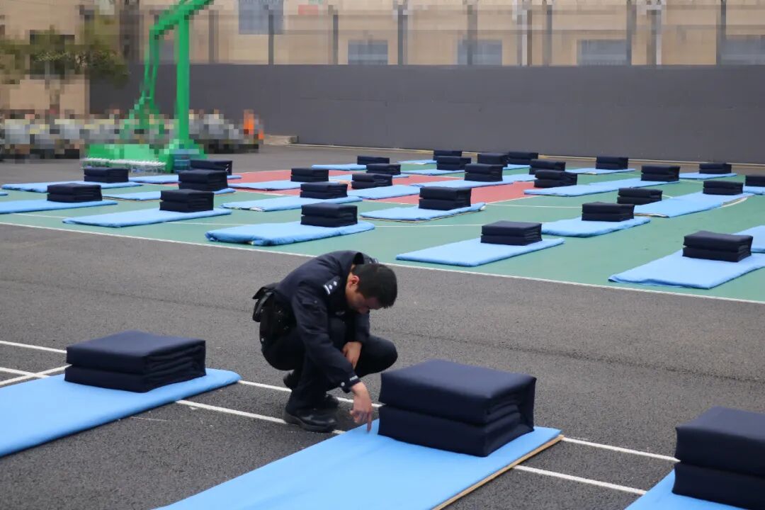 一是严格落实每日六点半起床整理内务制度,民警现场督导,确保被褥叠放方正如“豆腐块”棱角分明,铺面平整无褶皱。