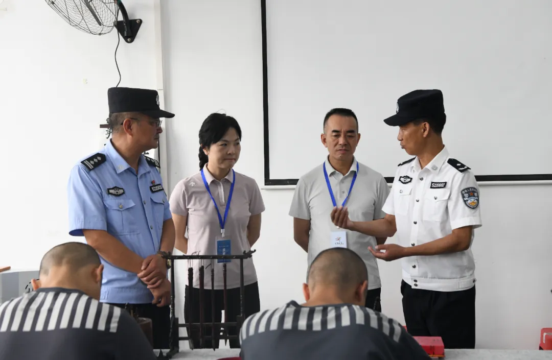 交流期间,广东省未管所一行在技培楼现场观摩了“正心”改造罪犯项目第一期“集体内省”教育开展情况,深入三大现场,实地了解监狱民警日常工作,对内务标准化、队列标准化、书法润心等特色改造品牌给予了肯定。