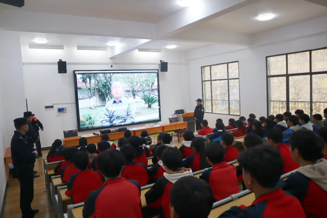 随后,未管所民警程诚结合真实案例,为学生们带来了一堂生动的法治教育课。他深入浅出地阐释了《刑法》《未成年人保护法》《预防未成年人犯罪法》等相关法律知识,并针对校园欺凌、性侵、网络诈骗等热点问题,传授防范和应对策略,引导青少年树立正确的法治观念。