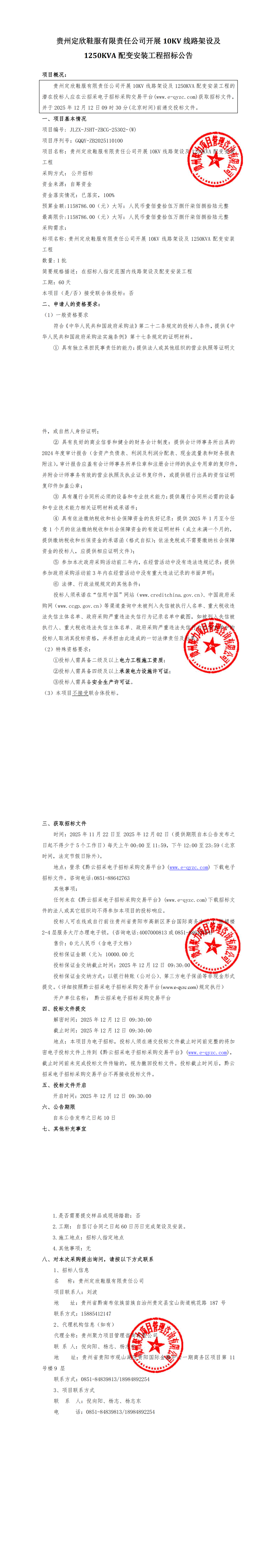 贵州定欣鞋服有限责任公司开展 10KV 线路架设及 1250KVA 配变安装工程招标公告