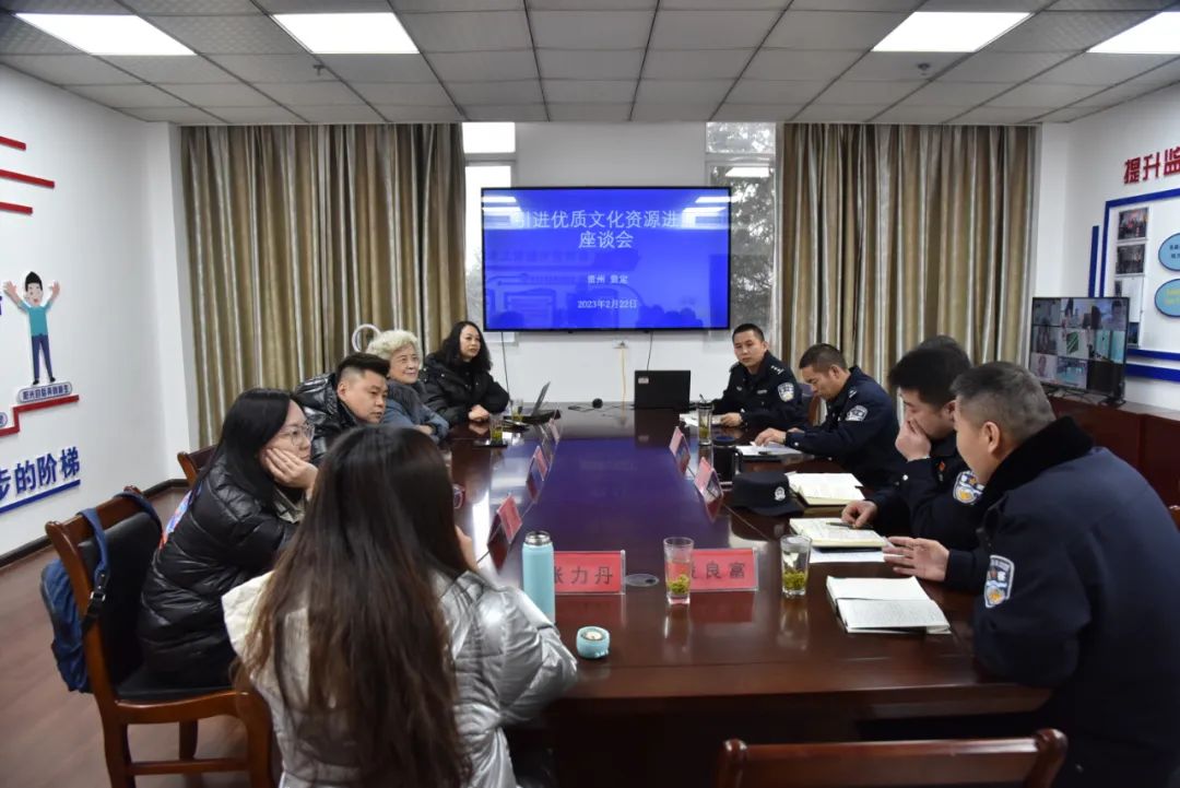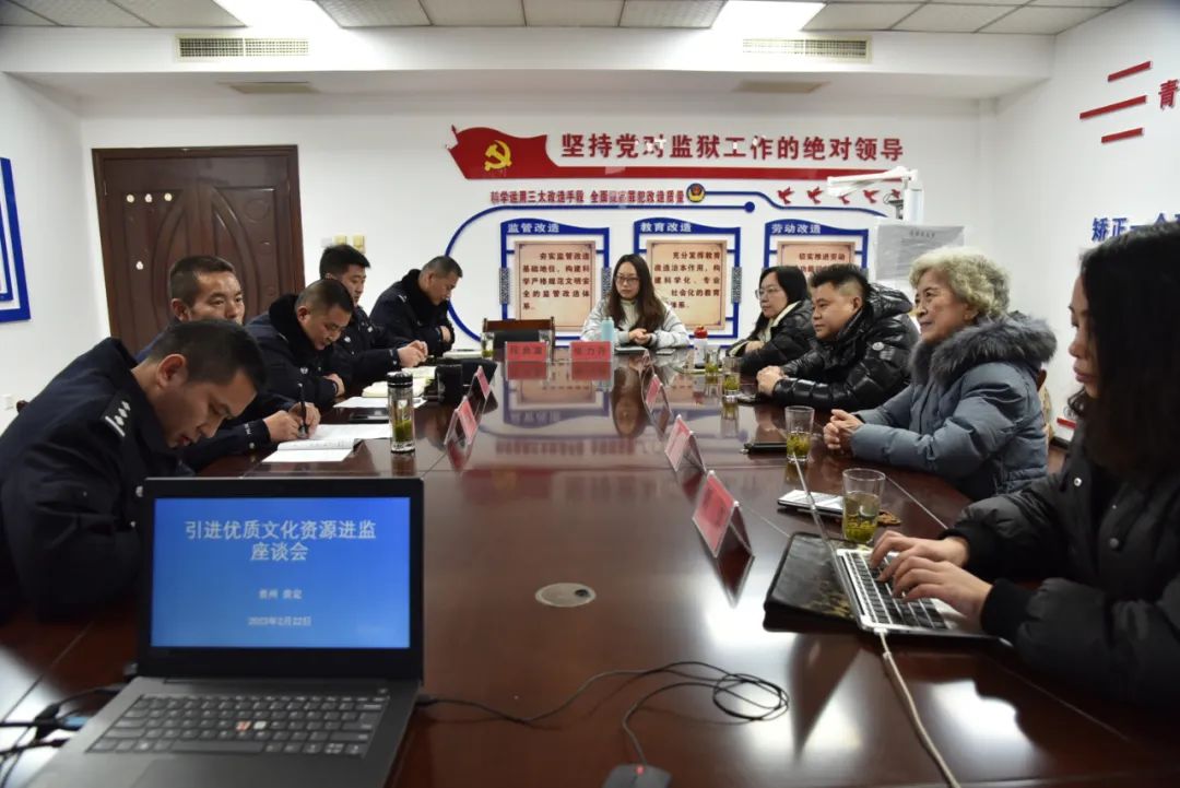 近日,贵州省心理工作者协会会长、原贵州广播电视台退休主持人、制片人刘秀琴,贵阳孔学堂推广部活动普及科科长邹恒,贵州广播电视台《育儿大师》节目制片人武艺及工作人员一行6人,受邀到省未管所(贵定监狱)参加关于引进优质文化资源进监 助力未成年罪犯教育改造为主题的座谈会。省未管所(贵定监狱)党委书记、所长胡仕荣参加座谈,会议由所党委委员、副所长张百胜主持,教育改造科、三管区主要负责人参会。