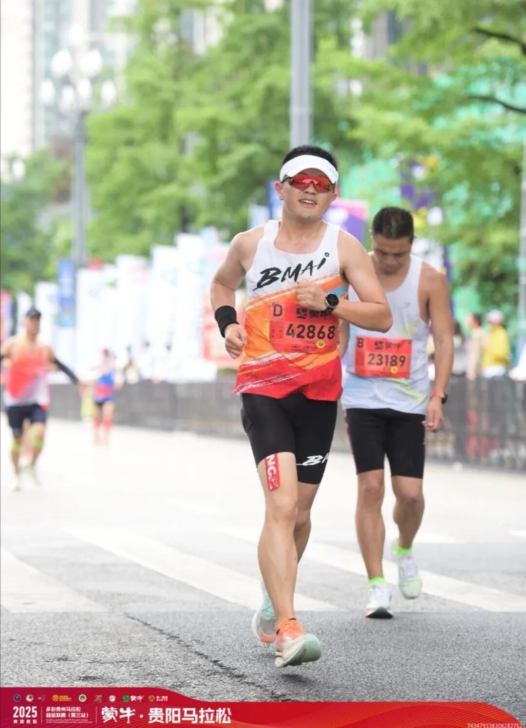 冲过2025贵阳马拉松终点线,那些在坡道上的艰难、观山湖的美景、观众的热情都化作此刻的自豪,我做到了。