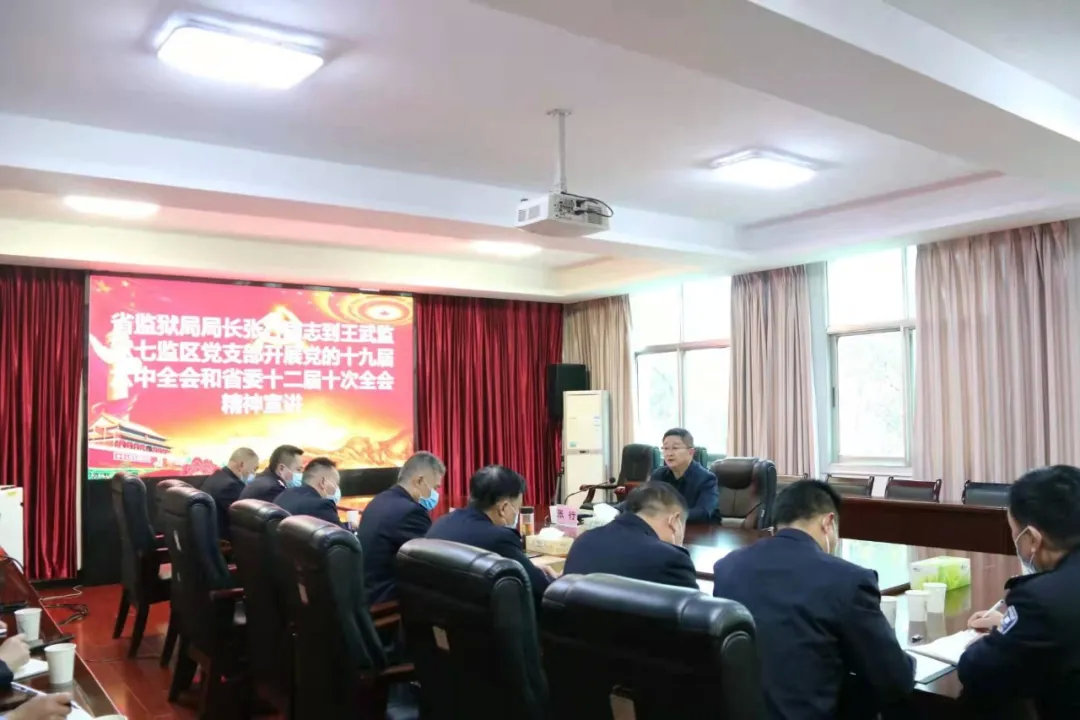 12月10日省司法厅党委副书记、副厅长,省监狱局党委书记、局长张行到党支部联系点贵州省王武监狱七监区党支部宣讲党的十九届六中全会精神和省委十二届十次全会精神。