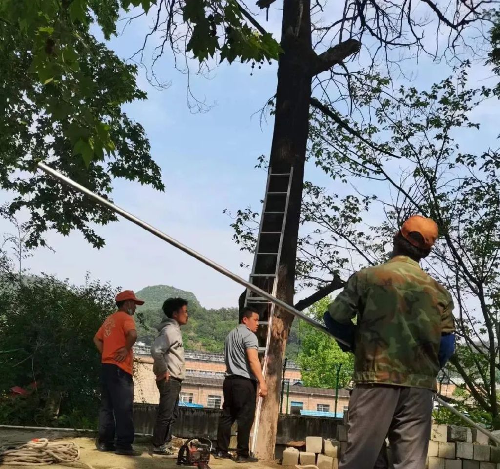 每周重点检查防洪防涝设施设备、排水沟渠、防雷避雷设施设备、周边山体、房屋结构、在建工程等。通过排查,围墙处有一棵较大枯树可能倾倒,存在安全隐患,立即开展整治。
