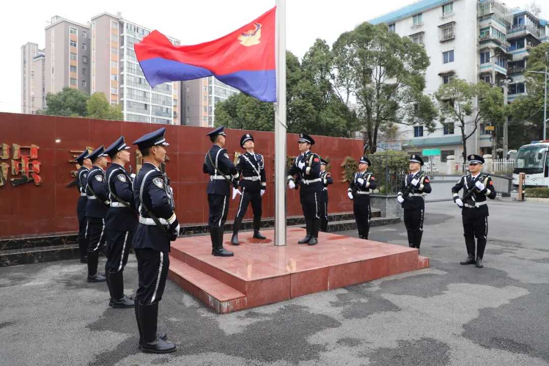 “升警旗,奏唱中国人民警察警歌!”雄壮激昂的警歌奏响,警旗缓缓升起、迎风飘扬。全体民警庄严敬礼,歌声与心声交融,传递出对职业的无限崇敬与对使命的坚定担当。