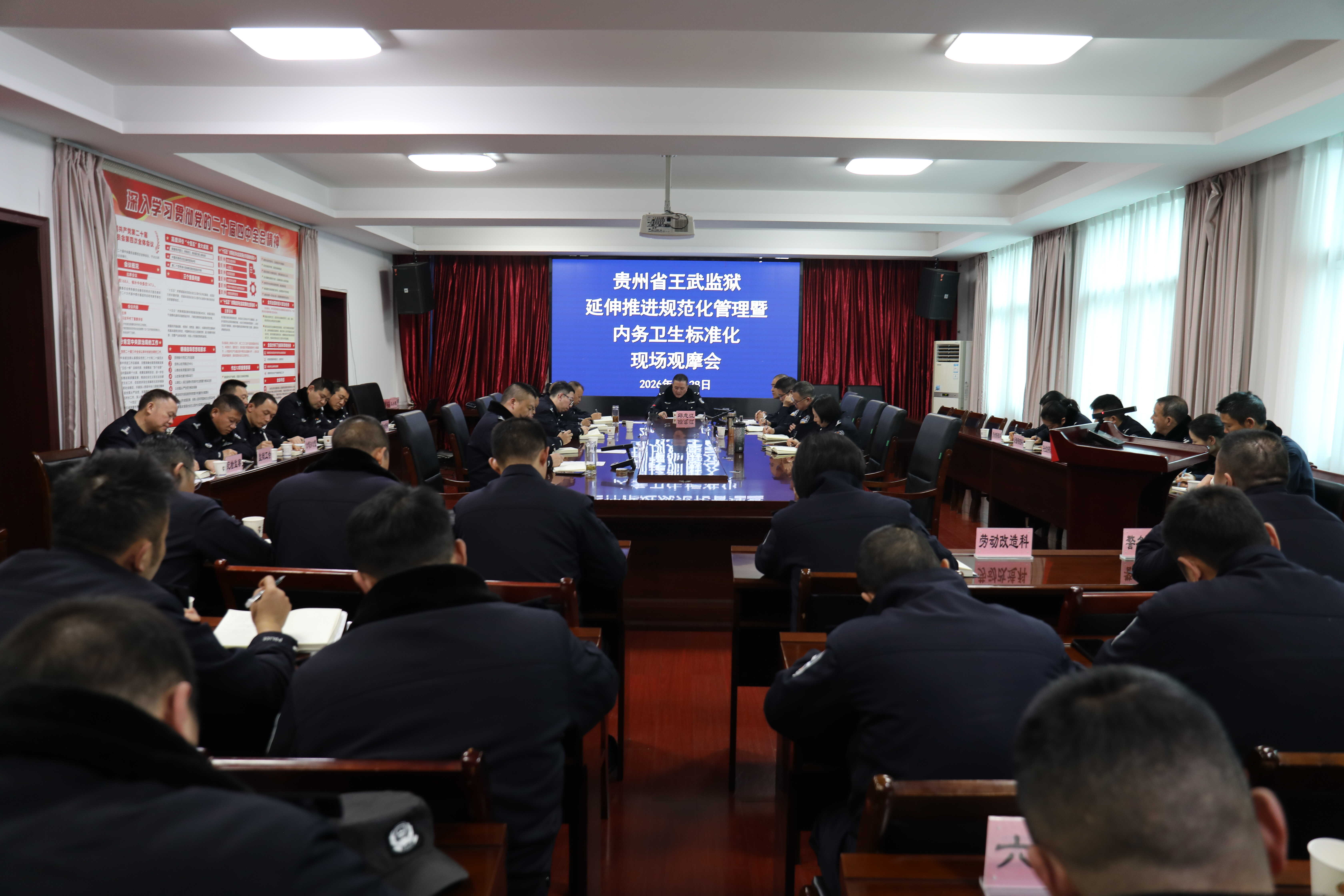 为深入贯彻落实省监狱管理局2026年1月22日规范化管理点调会会议精神,全面提升监管改造工作质效,近日,贵州省王武监狱组织召开了延伸推进规范化管理暨内务标准化现场观摩会。监狱领导班子成员、各科室及监区主要负责人参加会议。会议全面吹响规范化管理向纵深推进、向全域延伸的集结号,将推动监狱各项工作再提质效、再上台阶、再写新篇。