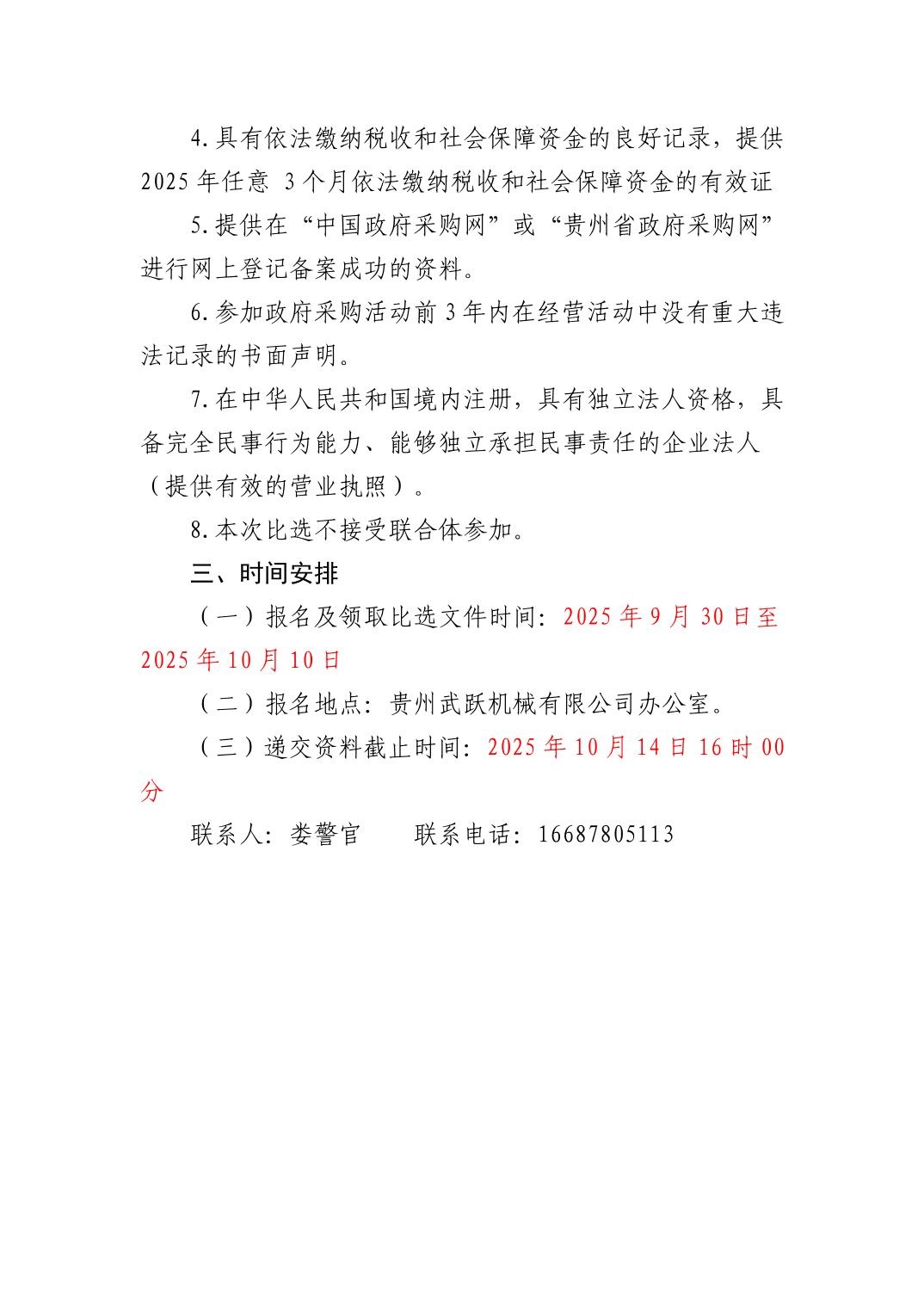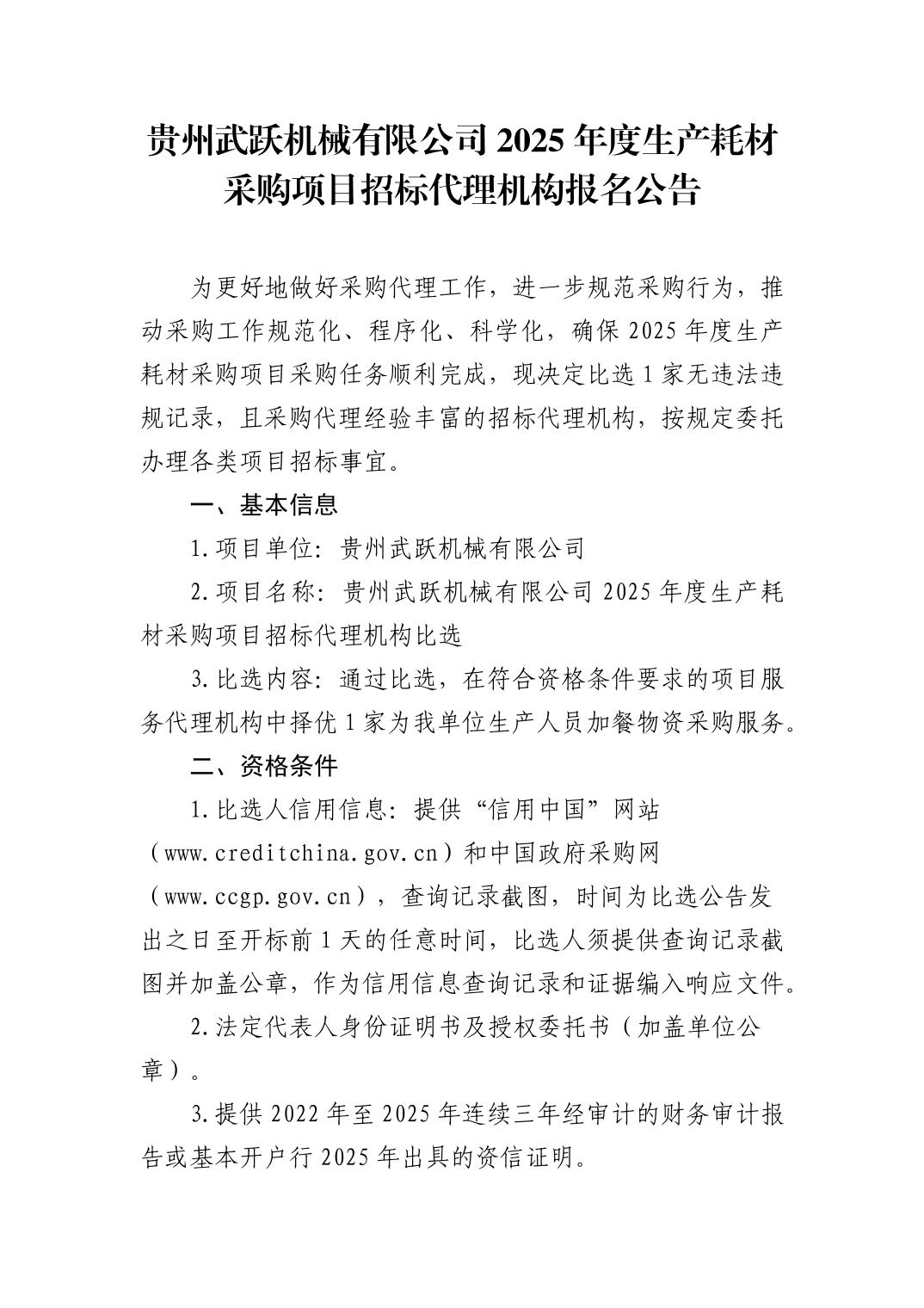 贵州武跃机械有限公司2025年度生产耗材采购项目招标代理机构报名公告