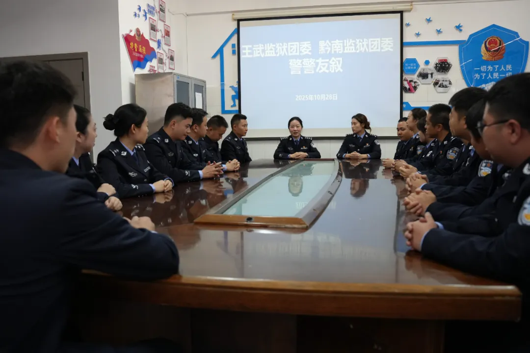 午后的王武监狱“青年文明号”活动室里,思想碰撞正热烈。“青年文明号座谈会”准时开启,王武监狱团青民警用掌声表达对黔南监狱团青民警的欢迎。