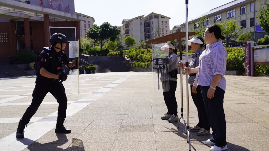 "特警叔叔的动作干净利落,还教我们如何躲避危险,感觉既震撼又安心。"演练结束后,特警队员向校园安保人员现场教学防暴器械的正确使用方法以及校园反恐防暴处置流程。