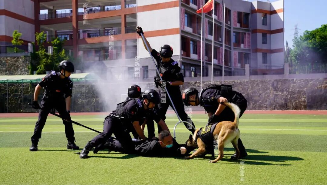 下午3时,演练模拟一名"不法分子"强行闯入校园,持械威胁师生安全的警情,接到校方联动警报后,监狱特警队迅速启动应急预案,现场封控、战术威慑、警犬扑咬、迅速处置,处置全程果敢凌厉、处置专业,充分展现了监狱特警“小组协同、人犬配合”的最小作战单元战术能力水平。现场师生惊叹:“监狱特警的实战能力让大家安全感爆棚。”