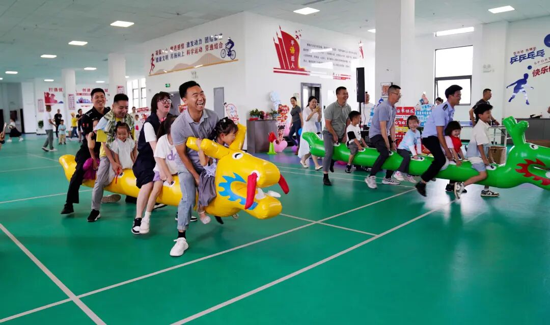 随后的亲子互动游戏环节,民警职工们暂卸工作的重担,与孩子在轻松愉快的游戏中携手闯关,欢声笑语汇聚成暖流,浸润着每一个家庭,生动诠释了警营“大家庭”对民警“小家庭”的关怀与支持。