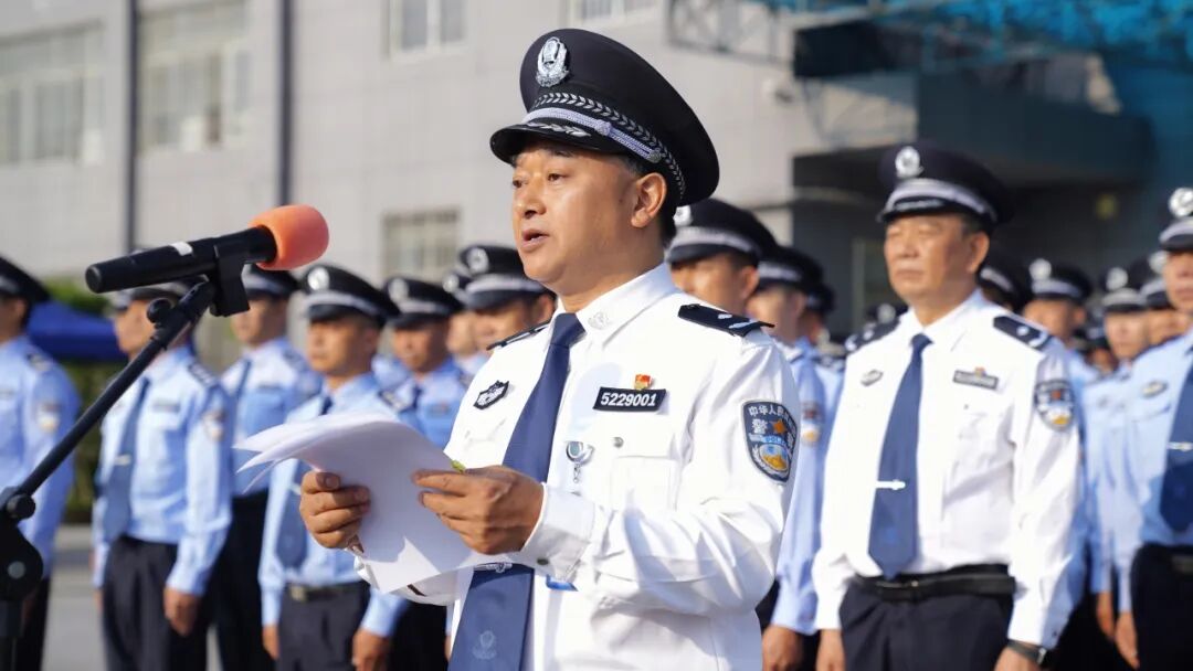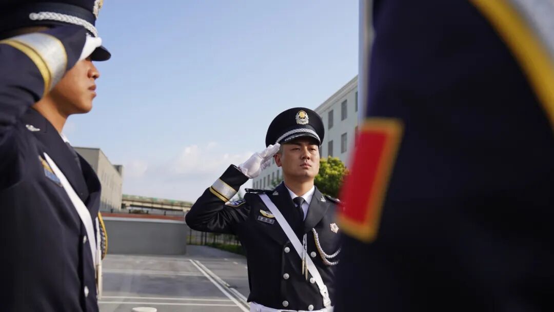 “齐步走!”迎着清晨的阳光,全体民警整齐列队,神情庄重。在指挥员清脆的口令下,七名护旗手迈着铿锵有力的步伐,整齐划一地走向升旗台。