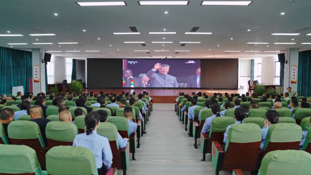 随后,监狱民警及驻监武警官兵集体观看了纪念中国人民抗日战争暨世界反法西斯战争胜利80周年纪念大会实况直播。