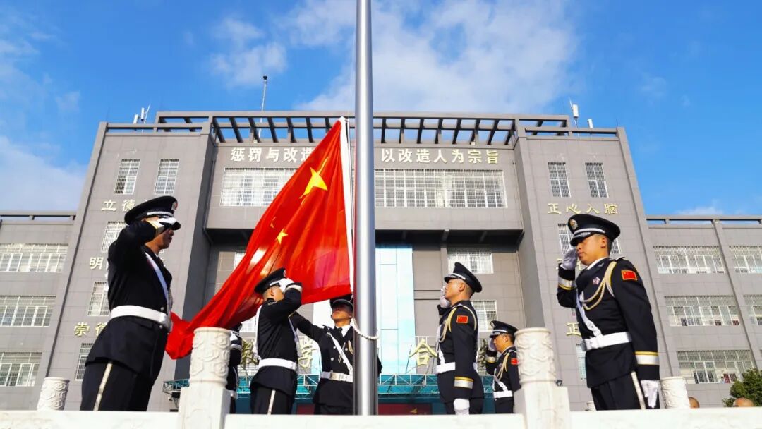 “向国旗——敬礼!”随着一声令下,国歌响起,升旗手挥动右臂划出优美弧线,鲜艳的五星红旗迎风展开,在全体民警的注视下缓缓升起。