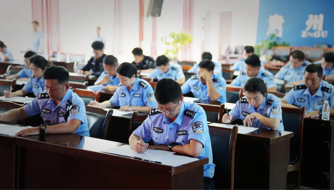 比赛现场秩序井然,参赛民警全神贯注,认真审题,精心构思,严谨行文,充分展现了扎实的基本功和良好的精神风貌。