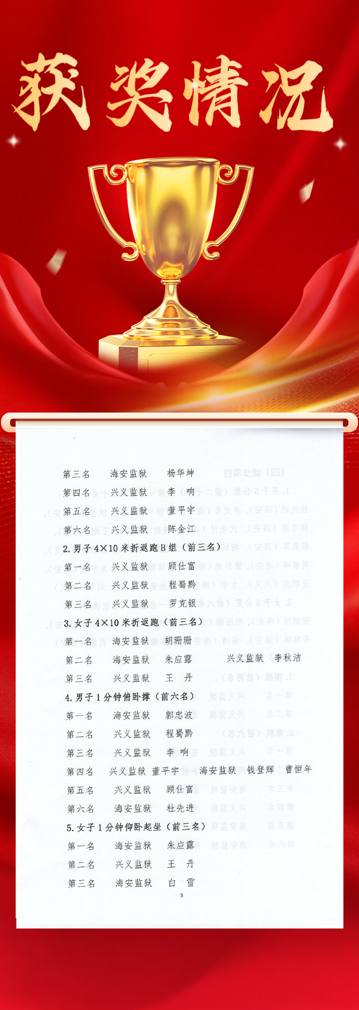 经过三天的激烈角逐,运动会各项赛事圆满落幕。个人获奖情况如下: