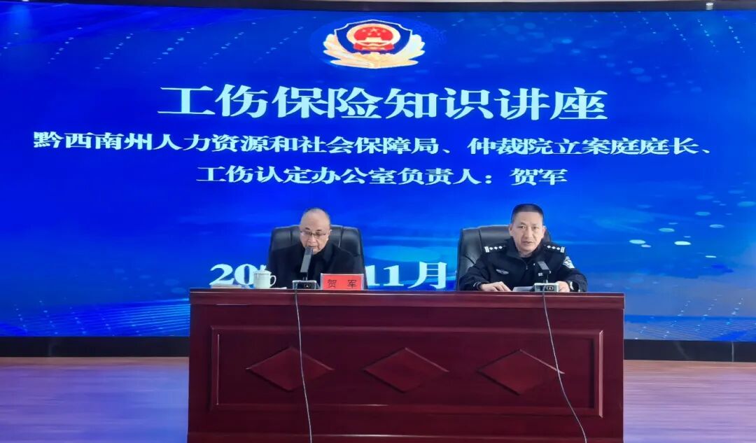 为进一步持续深化大练兵实效,深耕“强基警务”建设,提升民警职工对工伤保险政策的理解和应用水平,切实保障广大民警职工的合法权益,筑牢安全生产劳动保护屏障。11月27日,兴义监狱特邀黔西南州人力资源和社会保障局仲裁院立案庭庭长、州工伤保险科(工伤认定办公室)负责人贺军,为全监民警职工开展一场内容丰富、针对性强的工伤保险知识专题讲座。