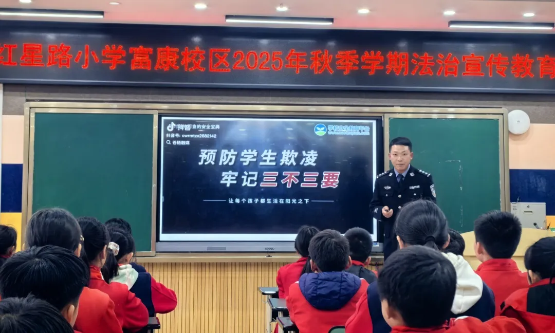 李建佳通过“案例解析+互动问答”的形式,引导同学们主动思考,在轻松愉快的氛围中,进一步加深了同学们对法律知识的理解,也在同学们的心中悄然播下法治的种子。随后,通过组织同学们签署了预防校园欺凌“三不原则”承诺书,不断提高他们尊法、学法、守法、用法的法治意识,懂得如何用法律武器维护自身合法权益,做新时代守法小公民。