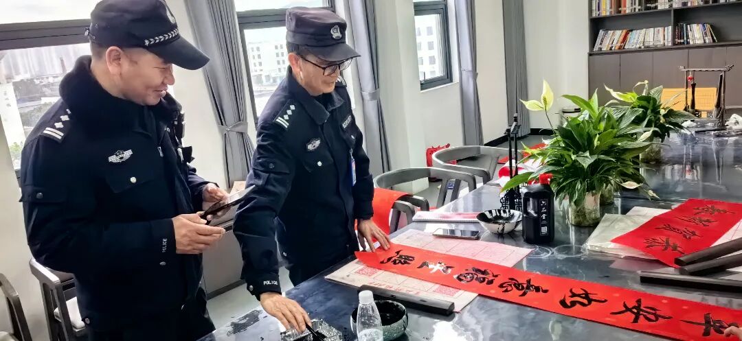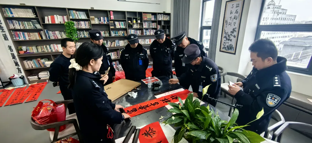 活动首日,职工活动中心变身“新春笔会现场”,邀请监狱软笔书法爱好者一同挥毫泼墨。大家满怀热情,行云流水间,一幅幅寓意吉祥、格调昂扬的春联与一个个饱满圆润的“福”字跃然纸上。这些作品不仅抒发了民警对美好生活的祈愿,更饱含着对监狱事业在新一年里奋勇前行的美好期许。民警们围在桌旁,一边欣赏着书法技艺,一边挑选心仪的春联,书法爱好者则自己动手展纸泼墨,挥毫寄情,笔墨之间传递着温暖与力量,字里行间洋溢着警营独有的朝气与荣光。