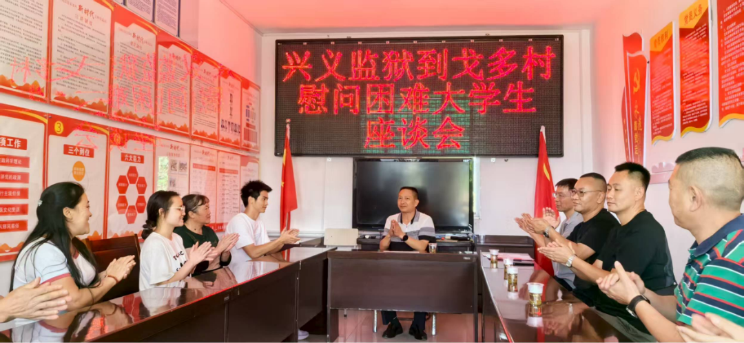 座谈会上,向今年考上大学的9名优秀学子表示祝贺并发放助学金,鼓励他们积极努力学习,早日成为国家的栋梁之材,回报社会,反哺家乡,建设家乡。同时,与监狱选派的驻村民警及村“两委”班子成员开展交流,大家共同探讨乡村振兴新思路新举措,勉励驻村民警继续当好“群众的贴心人”。