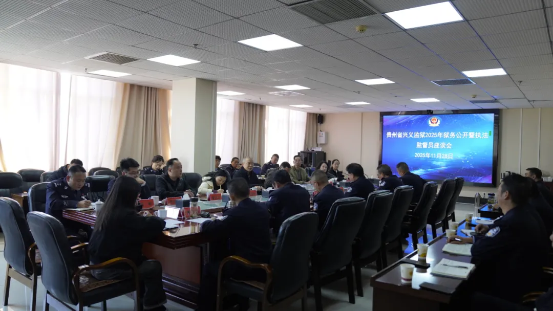 为进一步增强执法透明度与公信力,深化狱务公开,促进严格规范公正文明执法,11月28日,兴义监狱召开2025年度狱务公开暨执法监督座谈会,邀请执法监督员以及州委政法委、州人民法院、州人民检察院、州公安局、州司法局等代表参加座谈会,面对面为监狱执法工作建言献策。监狱部分党委班子成员,相关科室、监区负责人参加会议。
