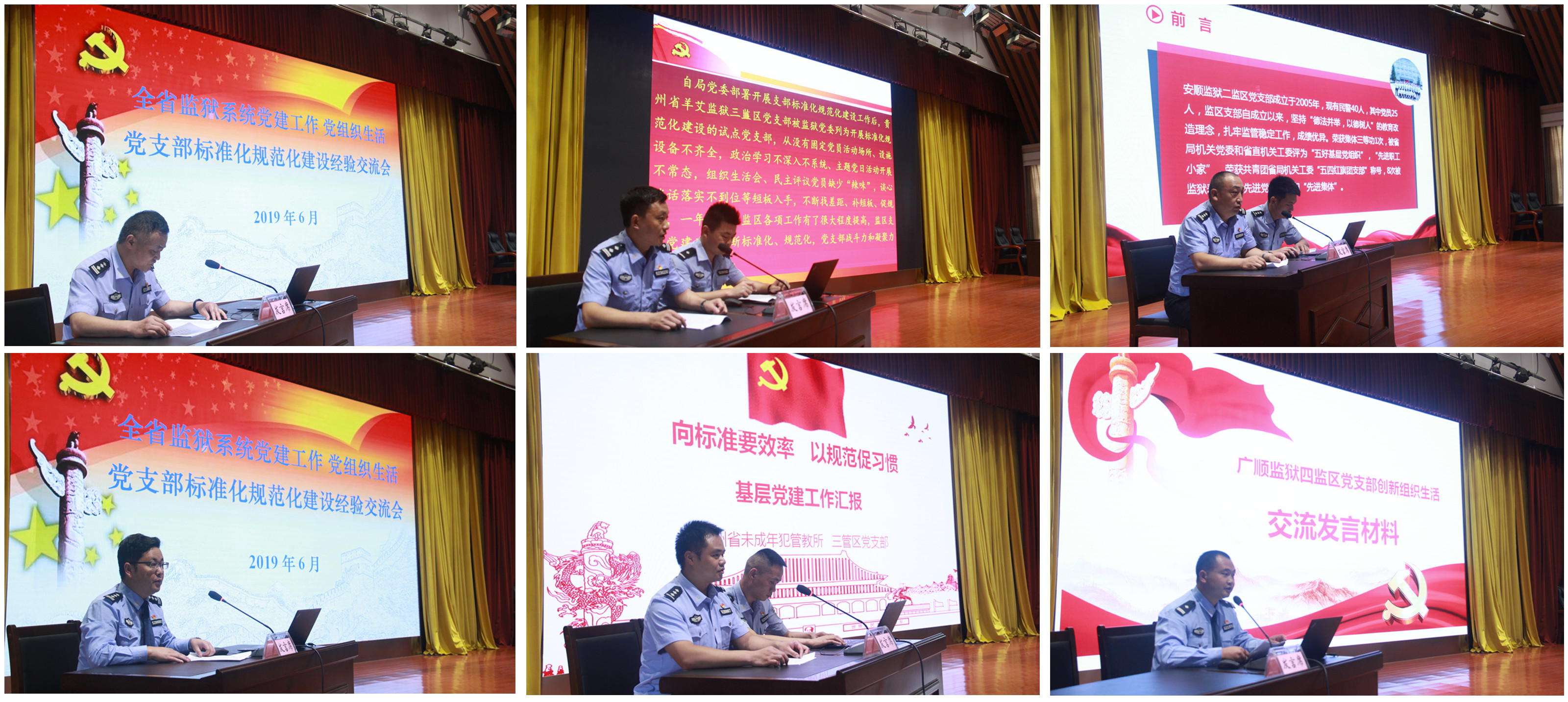 在党支部标准化规范化建设经验交流会上,羊艾监狱三监区党支部作了“找差距、补短板、促规范”的发言。监狱以抓好阵地建设,促保障规范化;抓制度落实,促制度运行规范化;抓关怀帮扶,促队伍建设规范化等措施,通过党建带队建,打造了能打仗打胜仗的干部队伍。省未成年犯管教所三管区党支部作了“向标准要效率、以规范促习惯”的发言。党支部突出一个“早”字,推动基本组织设置和活动阵地规范化;突出一个“活”字,推动基本队伍建设规范化;突出一个“硬”字,推动基本制度规范化;突出一个“引”字,推动基本任务落实规范化。