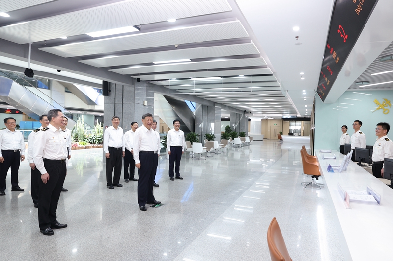 10月15日至16日,中共中央总书记、国家主席、中央军委主席习近平在福建考察。这是16日上午,习近平在中国(福建)自由贸易试验区厦门片区考察时,同综合服务大厅窗口工作人员亲切交流。新华社记者 鞠鹏 摄