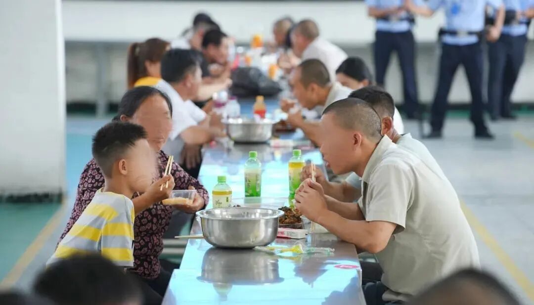 在“面对面共进午餐”环节,监狱食堂为罪犯亲属特别准备了一桌午餐。罪犯和亲属们围坐在一起,四目相对,一时间,食堂里交谈声、叮咛声交织,脸上露出幸福的笑容。简单的饭菜,传递的是亲情的味道、家的温暖,更是新生的力量。