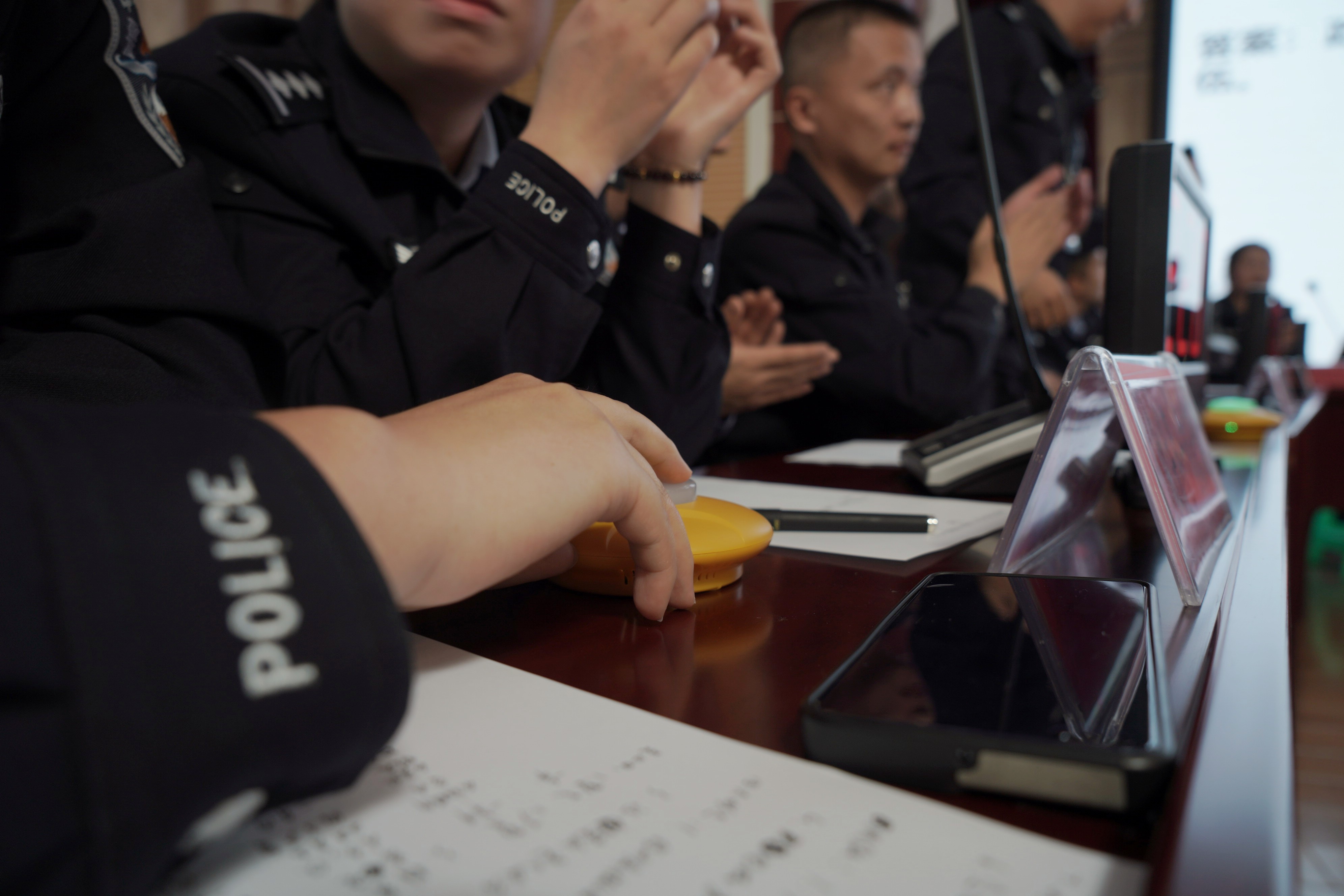 台上选手齐心对战,台下观众也跃跃欲试。风险题结束后,主持人与台下观众进行了互动。让观众参与进来,以检验大家学习贯彻习近平新时代中国特色社会主义思想主题教育的学习成果。答对的民警从容应对、对答如流,同时获得了奖品,瞬间点燃了场下观众的激情。