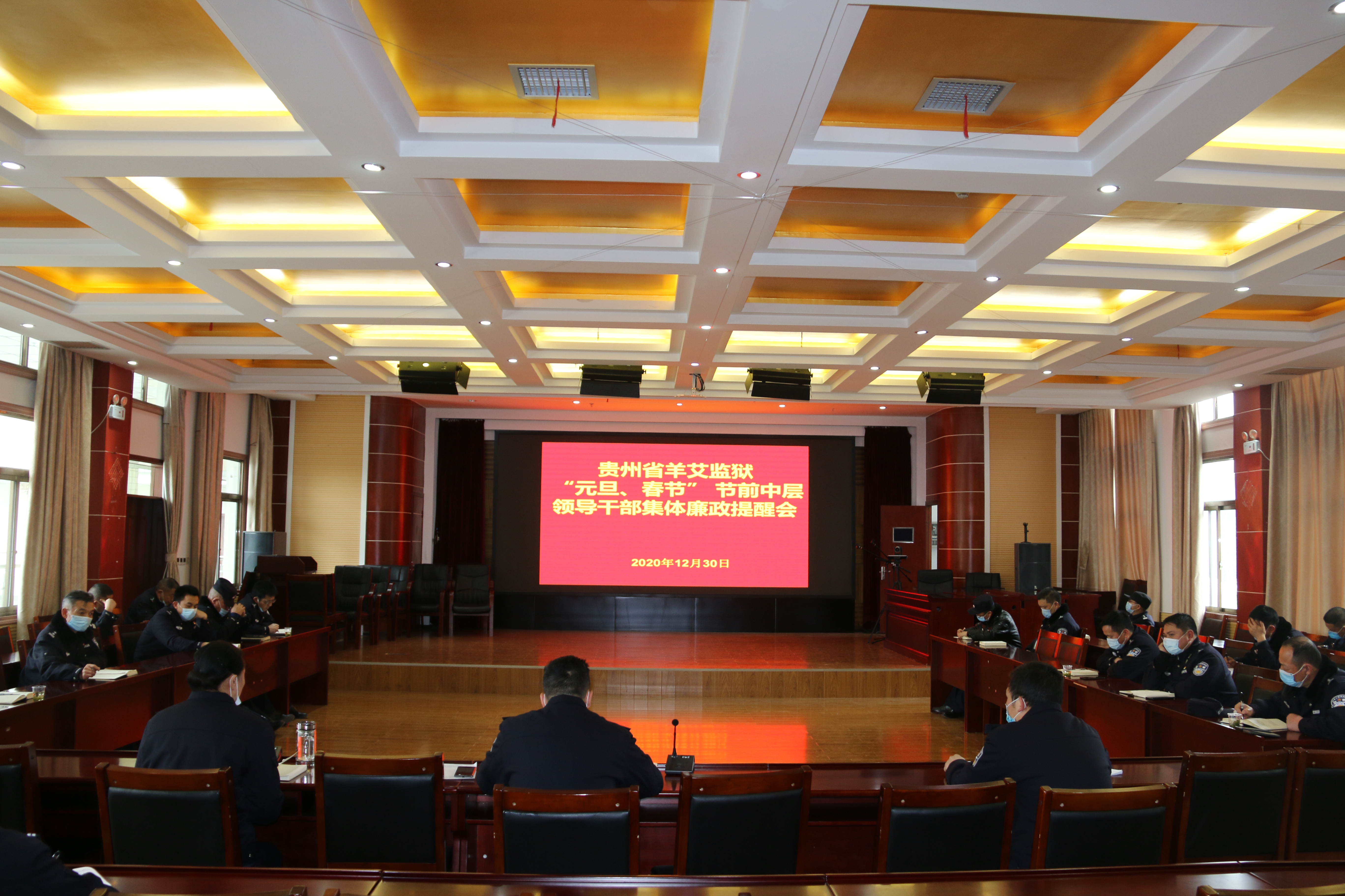 为切实加强元旦、春节期间纪律作风建设,强化廉洁自律意识,贵州省羊艾监狱于12月30日召开“元旦、春节”节前中层领导干部集体廉政提醒会。会议由监狱党委委员、纪委书记杨红霞主持。
