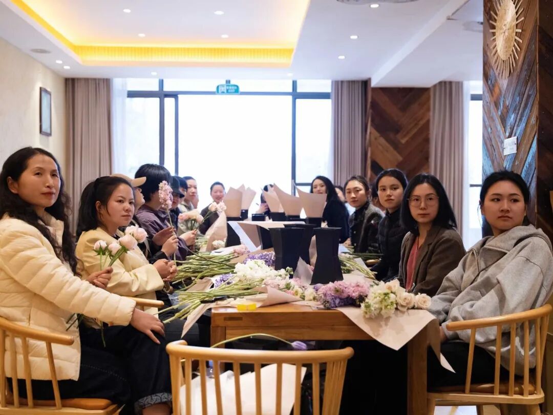 在花艺插花活动现场,花香四溢、暖意融融。大家在老师的指导下精心选材、创意搭配、巧手创作,将一枝枝鲜花变成错落有致、意蕴优美的花艺作品,在动手实践中舒缓工作压力,以雅致情趣滋养身心,保持更好的状态投入岗位工作。