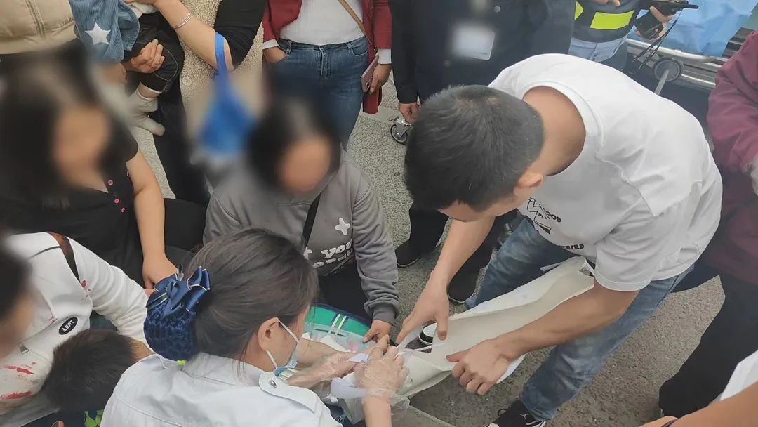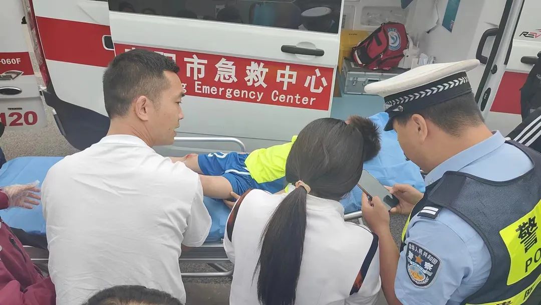 见到2名学生已经被撞倒在地,白米赶上前去表明身份:“我是一名医生,请大家先配合我把孩子转移到旁边,注意不要碰到他的腿。”过往群众纷纷前来帮忙,共同把孩子转移至路旁安全地带,开展应急救护。