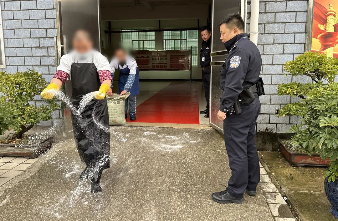 针对狱内路面凝冻现象,监狱第一时间组织开展抗凝冻撒盐除冰工作,及时排除凝冻险情。同时对易结冰路段等重点部位加密巡查,严防冰雪凝冻引发安全事故。