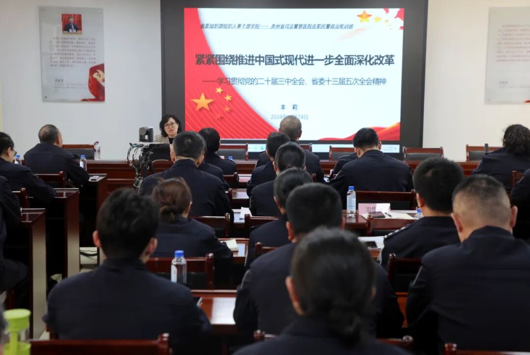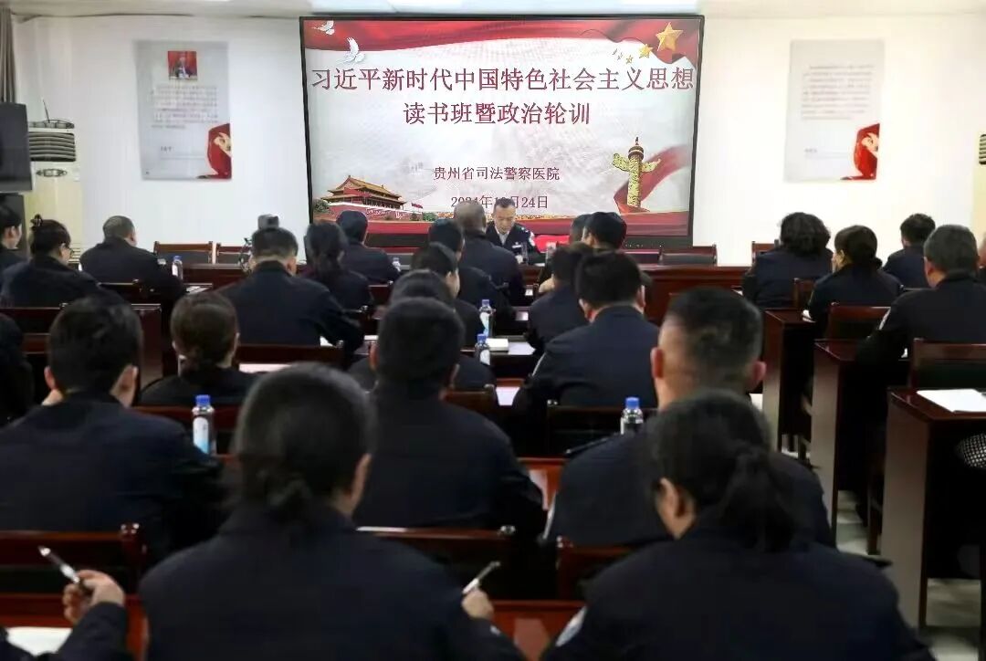 授课培训,根据医院工作实际和培训需求,医院与中共贵州省委组织部组织人事干部学院深度合作联合办班,干部学院采取“送教上门”形式开展培训,既大大缓解民警的工学矛盾,还让优质师资力量能开展针对性强、覆盖面广的培训。本次政治轮训为期三个月,授课范围涵盖政治理论、理想信念、党性修养、宗旨意识、职业精神教育、国防教育等六大方面,内容涉及习近平新时代中国特色社会主义思想、习近平法治思想、党的二十届三中全会精神、省委十三届五次全会精神、意识形态工作领导权等九门课程。旨在全面加强医院民警队伍政治建设、思想建设、能力建设、纪律作风建设。
